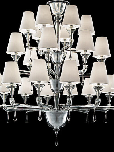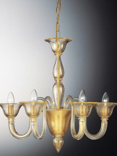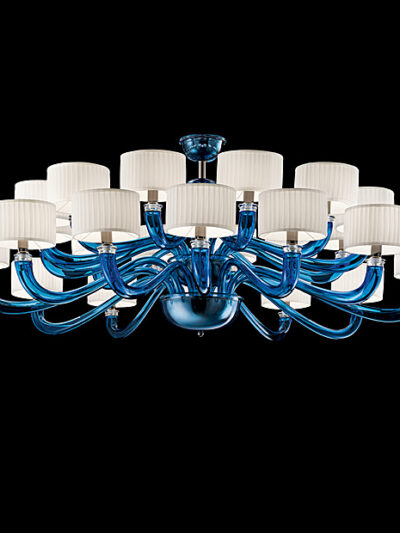 Diese elegante Kollektion besteht aus historischen Merkmalen sowie einem zeitgemäßen Design. Der Kronleuchter besteht aus mundgeblasenem Glas, sowie die Arme und Tassen die mit der Incamiciatura-Technik hergestellt wurden.