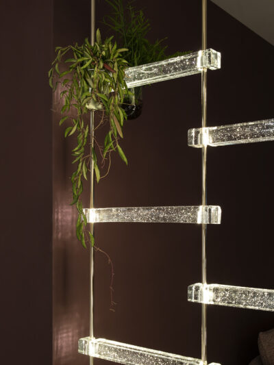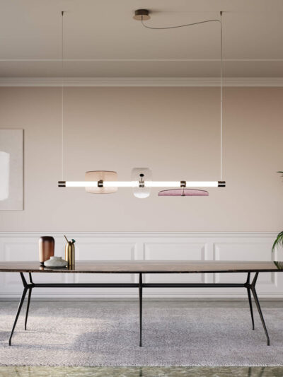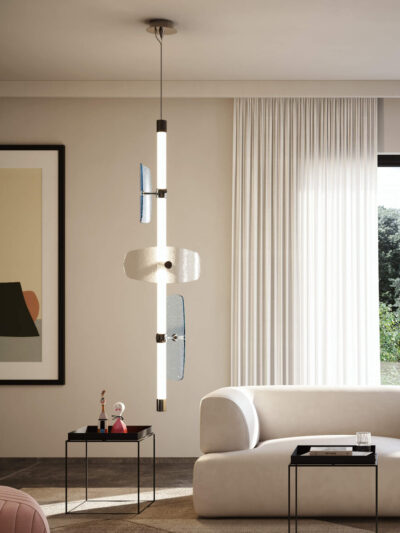 Handgefertigte „torchòn“-Glas-Hängeleuchte, in transparenten oder schwarzen Farben mit weißen Glasdiffusoren.