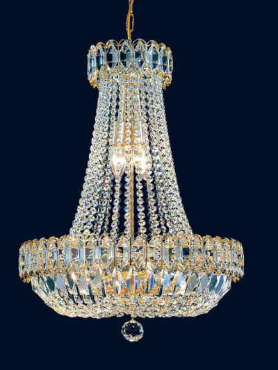 Purer Luxus… Hier sehen Sie eine geschmackvolle Gold-Kristall Deckenleuchte. Sie wurde von unseren Partnern handgefertigt und besteht aus den besten Materialien.  Der Rahmen besteht aus Gold. Die Kristall Dekorationen bestehen aus Vollschliff Kristall. Die 40 Lichter befinden sich im Inneren der Deckenleuchte. Auf diese Weise entstehen funkelnde Lichteffekte. Die Deckenleuchte sich aufgrund ihres Durchmessers von 170 cm ideal für größere Räume und Hotels. Weitere Kronleuchter und Lampen dieser Kollektion sind erhältlich. Bitte kontaktieren Sie uns bei Fragen, Wünschen oder für mehr Details. Wir helfen Ihnen gerne.