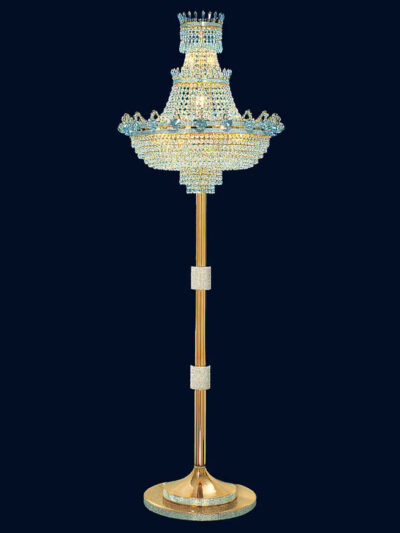 Sie sehen einen prachtvollen Gold-Kristall Empire Kronleuchter, der von unseren Partnern handgefertigt wurde. Wir garantieren beste Qualität und Verarbeitung. Der Kronleuchter besteht aus einem Gold-Rahmen und unzähligen Voll-Schliff Kristallen. Gegen Aufpreis ist der Lüster mit Swarovski Kristallen erhältlich. Die Kristalle sind zu Ketten zusammengefasst und können auf diese Weise den Empire-Stil nachempfinden. Die 21 Lichter befinden sich im Inneren des Leuchters und erzeugen tolle Lichteffekte. Sie sehen hier das Modell mit einem Durchmesser von 80 cm. Es eignet sich sowohl für kleinere als auch für größere Räumlichkeiten. Weitere Kronleuchter dieser Kollektion sind verfügbar. Bitte kontaktieren Sie uns bei Fragen, Wünschen oder für mehr Details. Wir helfen Ihnen gerne.