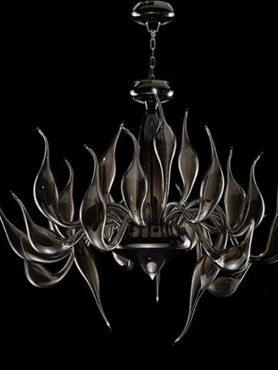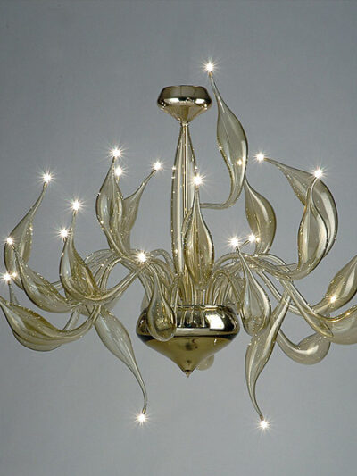 Hier sehen Sie eine außergewöhnliche Interpretation einer Öl Lampe aus Muranoglas, handgefertigt von dem talentierten Künstler Fabio Fornasier. Dieser junge und hochtalentierte Glasbläser folgt der Familientradition der Glasbläserei und erfindet seine Meisterwerke dennoch immer wieder neu. Er verbindet Tradition und hochwertige Qualität mit neuen, spannenden Designs. Die Öl Lampe ist in klassischem Transparent gehalten und besitzt 18 weit geschwungene und gedrehte Arme. Jeder Öl Lampe und jeder Kronleuchter Fornasiers ist ein individueller Blickfang. Dieses Modell ist eine fabelhafte Kombination aus traditioneller Verarbeitung, hochwertigen Materialien und einem unglaublichen Design. Überzeugen Sie sich selbst von der Eleganz und Magie eines Murano Kunst Leuchters von Fabio Fornasier und besuchen Sie unseren Showroom, in dem Sie neben eines Kunstwerks von Fornasier weitere Lüster bestaunen können! Bitte kontaktieren Sie uns bei Fragen und für weitere Details. Wir helfen Ihnen gerne.