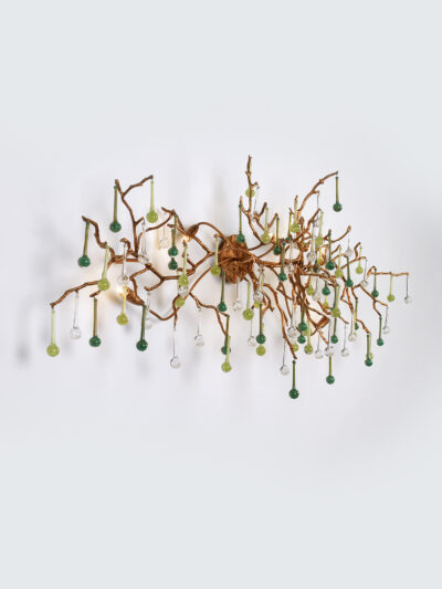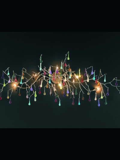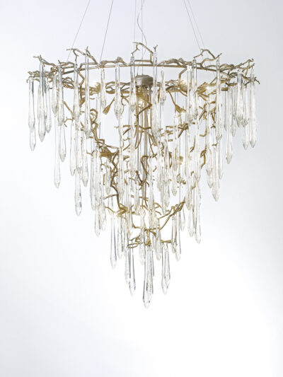 Dieser spektakuläre Kronleuchter zeichnet sich durch sein herrliches, innovatives Design aus. Jedes Stück ist handgefertigt aus Alter Bronze und mundgeblasenem italienischem Glas. Die Metallstruktur besteht aus einer verwickelten Spirale aus Zweigen, die den weichen Glastropfen einen schwebenden Eindruck verleihen. Multiple Variationen der Bildschirme ermöglichen die Trennung von Räumen und großen Flächen. Wir garantieren erstklassige Qualität und hochwertigste Verarbeitung. Alle Leuchter können spezifisch für den Kunden hergestellt werden. Dieser Leuchter ist verfügbar mit transparentem, farbigen oder Silber/goldenes Glas (Preise variieren).