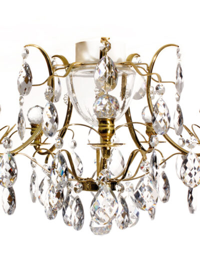 Bei diesem Modell handelt es sich um einen wunderschönen und klassischen Kristall-Kronleuchter im Empire Stil, handgefertigt von unseren schwedischen Partnern. Wir garantieren erstklassige Qualität und hochwertigste Verarbeitung. Insbesondere in Kombination mit den handgeschliffenen Kristallen in Oktagon-und Tropfenform entsteht ein umwerfendes Gesamtbild. Es handelt sich um ein Modell mit Rahmen aus poliertem Messing oder Nickel, 5 Halterungen für Kerzen und 6 Glühbirnen.