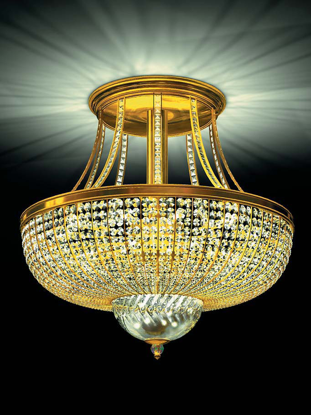 Eine wirklich exquisite Deckenleuchte mit Reflektor aus den besten Materialien in Handarbeit gefertigt. Aufgrund ihrer Größe und Ausstrahlung ist sie ideal für Hotels und / oder große Räume. Ein atemberaubender Karat Goldrahmen in Kreisform trägt schöne handgeschliffene Kristallkettendekorationen, die die 24 Lichter wie einen Vorhang bedecken. Dies schafft atemberaubende Lichteffekte, die den Zauber der Vergangenheit aufleben lassen. Es handelt sich um Vollschliff Kristalle. Swarovski Kristalle sind gegen Aufpreis erhältlich. Wir bieten eine Reihe von Beleuchtungen aus dieser Kollektion. Bitte zögern Sie nicht, uns für weitere Informationen oder Details zu kontaktieren. Wir freuen uns Ihnen zu helfen.