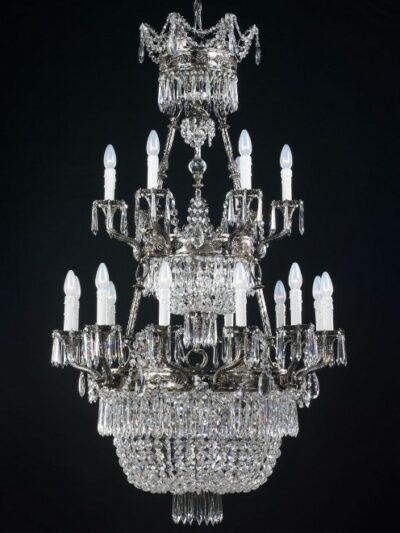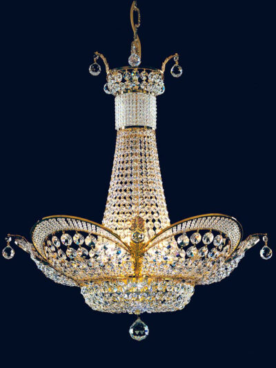 Hier sehen Sie einen majestätischen Empire Kristall Lüster, der sich perfekt für Hotels und/oder Ballsäle eignet. Dieses imposante Meisterwerk wurde eigens für unsere Kunden von unseren österreichischen Partnern handgefertigt. Wir garantieren hochwertigste Materialien und beste Verarbeitung. 16 Lichter werden getragen von einem stabilen Rahmen aus 24 Karat Gold im edelen Antik-Look. Die Lichter sind in einem Kreis um die Kristallketten und -anhänger angeordnet, sodass funkelnde Lichteffekte entstehen. Gegen Aufpreis ist das Model „7250 Prestige“ auch mit Swarovski Kristallen erhältlich. Bitte kontaktieren Sie uns bei Fragen oder Wünschen. Wir helfen Ihnen gerne. Besuchen Sie uns auch gerne in unserem Showroom in Hamburg.