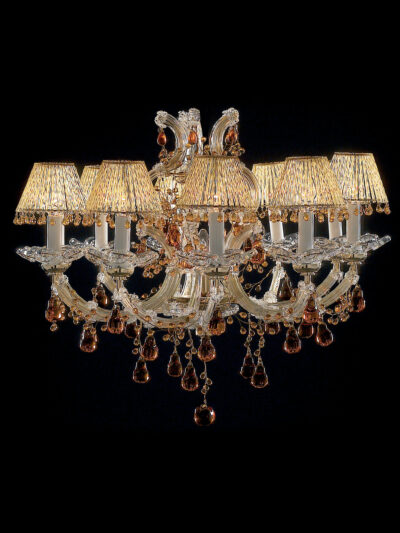 Majestätische Eleganz bringt Ihnen dieser 16+8 Licht Maria Theresia Kronleuchter, der von unseren österreichischen Partnern handgefertigt wurde.,Auf 2 Ebenen verteilen sich die 24 Lichter, die von einem Rahmen aus 24 Karat Gold gehalten werden. Die Arme sind stilvoll geschwungen und breit ausgelagert, wie es für einen Maria Theresia Kronleuchter typisch ist. Geschmückt ist dieser Lüster mit fabelhaften Swarovski Kristallketten und handgeschliffenen Kristallanhängern. Es entstehen magische Lichteffekte, die Sie zum Staunen bringen werden.,Das Modell „3246 Elegance“ ist auch mit Vollschliff Kristallen erhältlich. Andere Lampen und Rahmenausführungen sind verfügbar. Bitte kontaktieren Sie uns bei Fragen, Wünschen oder für mehr Details. Wir helfen Ihnen gerne. Kommen Sie gerne zu einem persönlichen Beratungsgespräch in unserem Showroom in Hamburg vorbei.