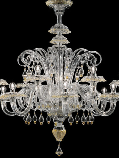 Auf den Spuren von Taif, eine Design-Ikone, Baikal greift einige ihrer charakteristischen Elemente heraus: Mit Kristallanhängern, seinen verdrehten Pastoralen – mit einem Herz aus Gold in Kristall eingebettet – und die langen Lampenfassungen, auch vergoldet erhältlich. Das Gold in Glas zerteit bereichert die Wirkung. Kronleuchter mit 6, 9, 12 oder 18 Armen sowie eine Wandleuchte mit 2 Leuchten. Dieser Leuchter ist in verschiedenen Größen, Farben erhältlich. Bitte zögern Sie nicht, uns für alle Fragen von Ihnen zu kontaktieren. Katalog: Gold. Designer: Barovier & Toso. Jahr: 2007. Farbe: Gold.