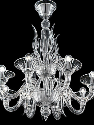 Diese elegante Kollektion besteht aus historischen Merkmalen sowie einem zeitgemäßen Design. Der Kronleuchter besteht aus mundgeblasenem Glas, sowie die Arme und Tassen die mit der Incamiciatura-Technik hergestellt wurden.