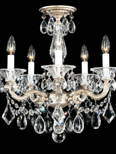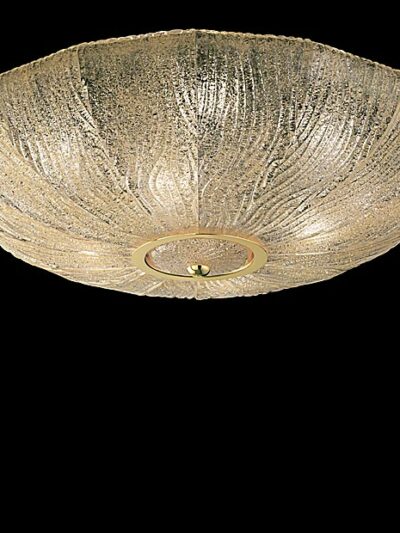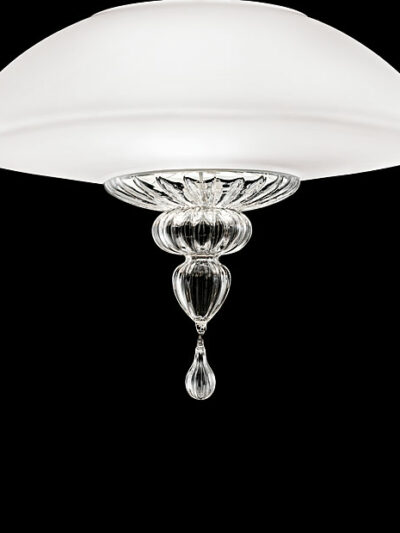 Deckenleuchte aus klarem, weißem oder geräuchertem Glas mit Metalldetails in Rotguss- oder Chromausführung.