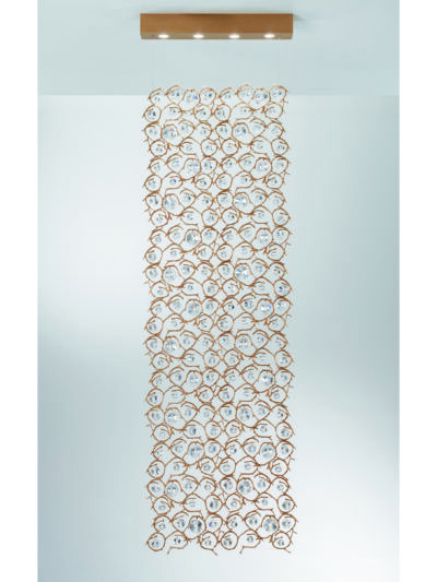 Ein Vorhang, ein paar Federn, ein paar kostbare Edelsteine: das ist es, was bei diesem Kronleuchter in den Sinn kommt, eine starke Persönlichkeit. Die Hauptdarsteller sind die Perlen mit den vielen kostbaren Fäden, die sich wie ein Schleier über die Metallstruktur des Lampenschirms legen und ihn fast unsichtbar machen. Eine Kollektion, die eine bestimmte Vorstellung von Weiblichkeit zum Ausdruck bringt: geheimnisvoll, intensiv. Erhältlich in verschiedenen Größen und Farben.