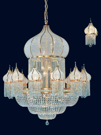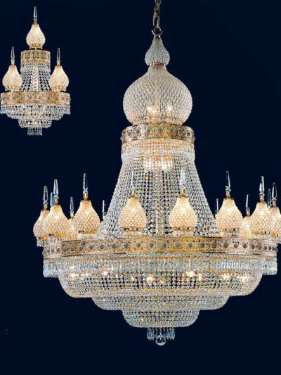 Dieser Luxuriöse Empire Kristall Lüster wurde eigens für unsere Kunden handgefertigt und besteht aus den hochwertigsten Materialien. Ein stilvoller Rahmen aus 24 Karat Gold trägt die unzähligen Vollschliff Kristalle, die in verschiedenen Größen in den Rahmen eingelassen sind. Auf insgesamt 240 cm Länge sind die handgeschliffenen Kristalle auf verschiedenen Ebenen verteilt, sodass exquisite Lichteffekte entstehen. Dieser Empire Lüster ist Eleganz und Stil pur. Perfekt geeignet für Hotels, Treppenaufgänge oder große Säle. Gegen Aufpreis ist das Model „8660 Prestige“ auch mit Swarovski Kristallen erhältlich. Bitte kontaktieren Sie uns bei Fragen, Wünschen oder für mehr Details. Wir helfen Ihnen gerne. Besuchen Sie uns gerne in unserem Showroom in Hamburg.