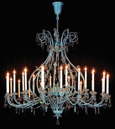 Eine außergewöhnliche und luxuriöse Stehlampe in Maria Theresia, handgefertigt aus den besten Materialien. Ein Rahmen aus 24 Karat Gold trägt stolz 6 Kerzenlichter und ist mit bemerkenswerten Swarovski-Kristalldekorationen verziert, die wunderschöne Lichteffekte erzeugen und die Stehleuchte wirklich bemerkenswert machen. Bitte kontaktieren Sie uns für weitere Informationen und Details zu dieser Leuchte oder einer anderen aus unserer Kollektion. Wir helfen Ihnen immer gerne weiter.