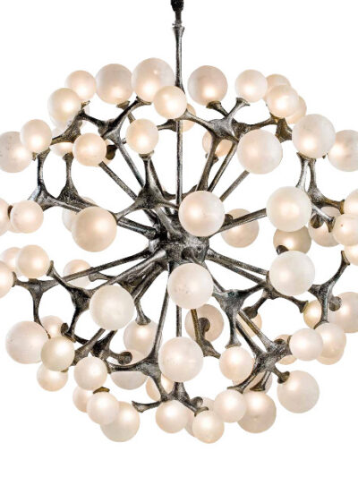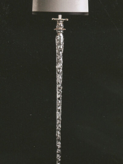 Transparency and exclusivity combined in a beautiful design table lamp. „Rosedale“ is designed and handmade by our Dutch partners. The base of the lamp consists of a slender silversilhouette that is externally surrounded by an elegant inverted glass cone. This successful combination creates wonderful lighting effects. Two lamps are hidden behind a beautiful fabric shade in a light honey gold and provide an inviting light. More table lamps of different materials and in different sizes from the collection „Rosedale“ are available. Please contact us for any questions, requests or for more details. Size Height: 90 cm Width: max. 43 cm Number of bulbs: 2 x E27, max. 60 Watt