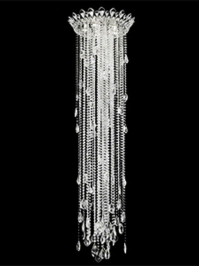 An extraordinary design by Nigel Coates for Terzani. With thirty-six Italian lead crystal angels in a base jumping pose hanging from a nickel ceiling base. This is the largest with the other sizes shown in the attached images (7, 19, 12, 18 and 24). The price shown is for the 18 piece hanging angels chandelier.