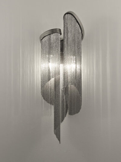 In Monica, the elegant soft light is combined with the dynamism of the lighting effects resulting from the presence of sequins that create multiple colored flashes of great scenic effect through light refraction.
