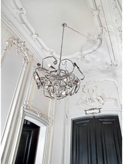 This chandelier from the Netherlands looks like a fresh summer breeze. Hence the name “Breeze”. Wonderfully twisted aluminium struts hold tasteful crystal flowers. These conjure up a stunning light in any room, and this chandelier looks particularly good with other chandeliers from the “Breeze” collection, so please contact us if you have any further questions or requests. We are happy to help you. Height: separately adjustable