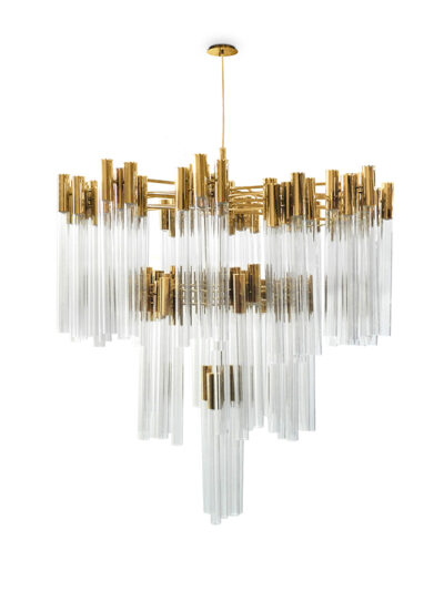 "Arthur" – this chandelier is a conqueror of darkness. A nickel frame holds the metal bands that fall like a curtain, and the bulbs so that a sparkling and unique light is produced that will take your breath away. The chandelier was designed by William Brand and has a round shape. Of course, it is also available in a smaller and larger size. If you are looking for a piece of modern and elegant design, then "Arthur" is the right choice. Smaller and larger chandeliers, wall, table, floor and ceiling lights are available. Different colours are available at an extra charge. Please contact us for more details. We are happy to help.
