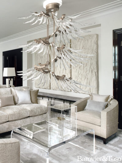"Delphinium" – a collection, which combines the purity of nature and the joys of life. The stainless steel structure is reminiscent of magical garlands, which are decorated with exquisite glass pendants. The lamps and chandeliers of this collection stand for the attributes joy, desire and magic. The garlands are reminiscent of a chic celebration or dancing elements. Let yourself be carried away by the breeze of the ease of this wonderful collection. All lamps and chandeliers of "Delphinium" were created and handmade by our designers. We guarantee the highest quality and the best workmanship. On this picture you can see a left-side oriented wall light with one bulb. Other lamps and chandeliers from the collection "Delphinium" are available in various designs. Please contact us for any questions, requests or for more details. We would love to help you.