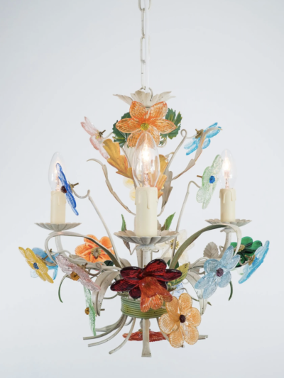 This beautiful chandelier is handcrafted from hand-blown Murano glass and decorated with multi-colored glass flowers and fruits. The fruit variety as well as the color of the fruits can be selected individually. All chandeliers are available in multiple sizes, styles and color combination and of course made to measure, as well as the frame. They fit especially well in living and dining areas. We guarantee first-class quality and high-quality processing. For further details, if you have any questions or requests, please contact us.