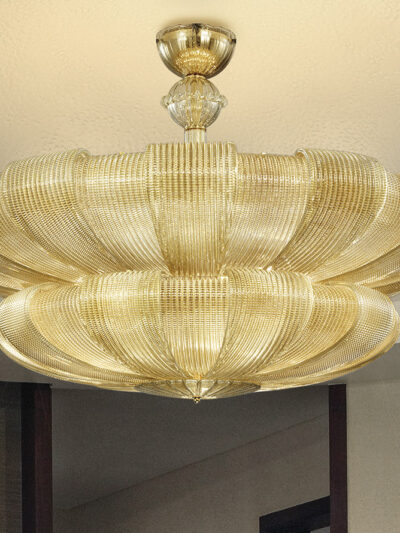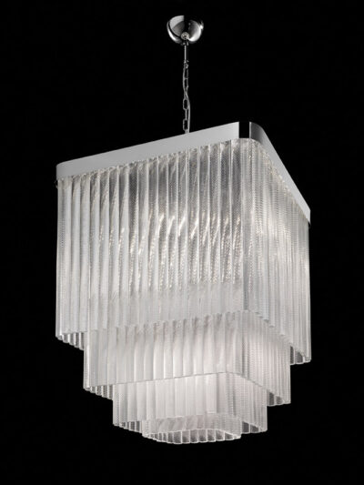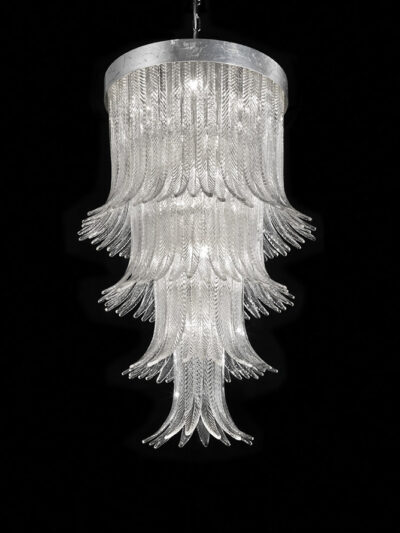 The Reflections series is a collection of elegant design. Murano glass, finely worked, becomes a means to create purest shades of light. Every single glass-part is one of a kind and produced with a unique and inimitable technique. All chandeliers can be individually customized. For further details, if you have any questions or requests, please contact us.