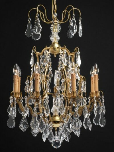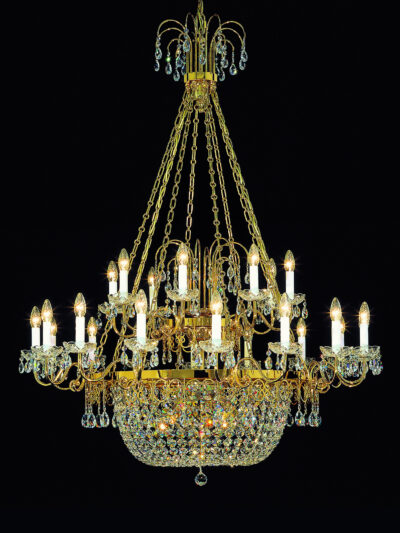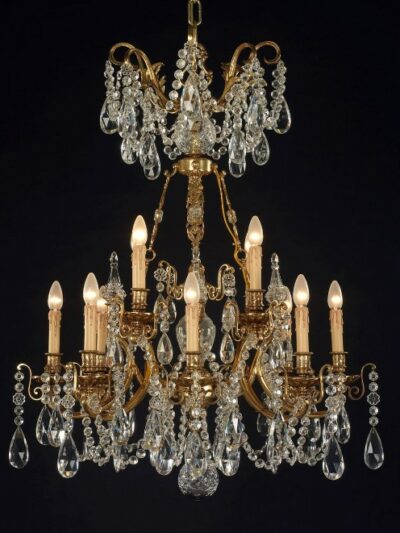 A beautiful brass chandelier from the “Coreen” collection by the famous Italian designers.This light was handcrafted in Italy and features a brass frame which supports the 12 candle lights, adorned with countless lead crystals. The chandelier is elegant and classy, yet thoroughly impressive. This chandelier is at its best when displayed in a room with high ceilings, where it can offer maximum light effects.Please contact us for more details or information. We are happy to assist you.