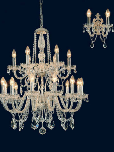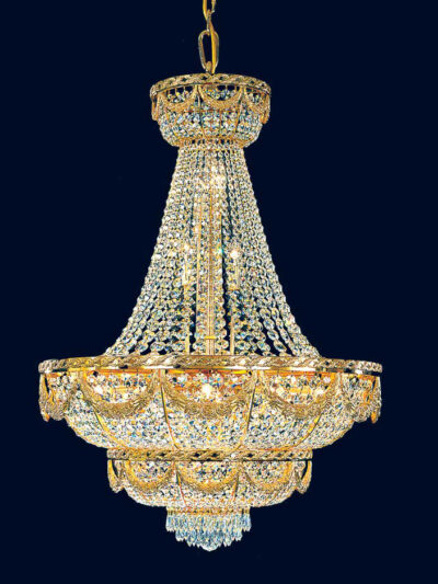 A fine gold-crystal ceiling lamp with beautiful blue crystal pendants. This small chandelier fits beautifully into a classic ambience. It consists of a gold frame and first class full-cut crystals. For an extra charge Swarovski crystals are also available. The special highlight are the fine blue crystal pendants.Other chandeliers of this collection are available. Please contact us for your questions, requests or for more details.  We’re here to help.