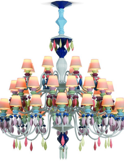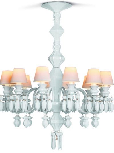 A spectacular table light with all the warmth of porcelain and in an seductive gold color. This amazing table lamp is part of the colection "Belle Nuite" of Lladro Porcelain lighting. This light updates the classic table light into a new unique design. Glass is replaced by porcelain to give your favorite space a cozy, inviting atmosphere.