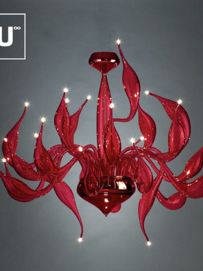 Here you can see a glamorous masterpiece: A large design chandelier from the talented glassblower Fabio Fornasier. The 36 light chandelier comes in an exciting turquoise/light blue colour. The lights are carried by the twisted Murano glass arms.,Fabio Fornasier was born in 1963 in Venice and followed the family tradition of the art of glass blowing. His passion for the manufacture of glass made him become a master of the chandeliers at an early age . Together with his brother Roberto, he leads a small but graceful factory in the heart of the island, in which they produce the finest chandeliers in the world. Fabio’s talent reaches so far that he is one of the main teachers of the University of glassblowing "Scuola del Vetro Abate Zanetti".,This model is also available with 18 or 24 lights and in many wonderful colours. Please contact us for further details.