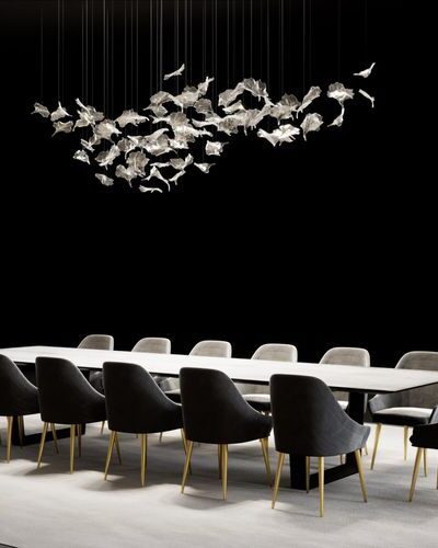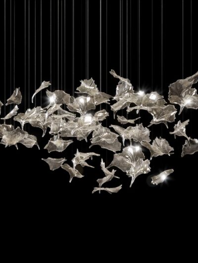 A special and modern design inspired by the movements and lightness of water. This extraordinary chandelier is available in different colours and finishes and is completely customisable according to your wishes.
