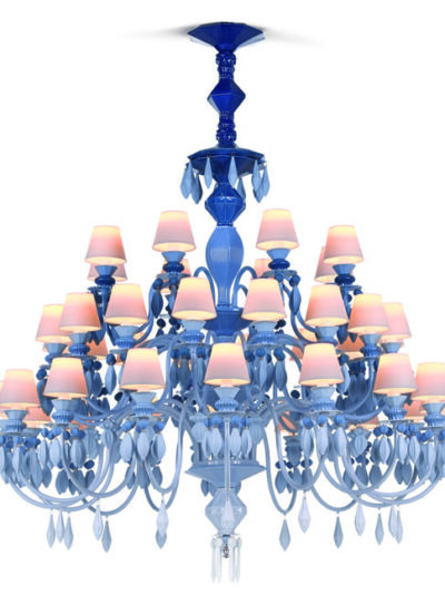 A spectacular 12 lights chandelier with all the warmth of porcelain and held in colorful porcelain. This amazing chandelier is part of the colection "Belle Nuite" of Lladro Porcelain lighting. This luster updates the classic hanging lamp into a new unique design. Glass is replaced by porcelain to give your favorite space a cozy, inviting atmosphere.