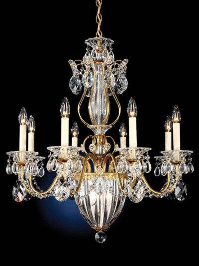 This model is one of our most beautiful and most spectacular crystal chandeliers. Arlington is a continuous crystalline design borne by the romantic mood of the time of Lord Byron. It has hand-shaped glass arms and carefully polished crystal pendants, as well as pillars, bowls and wax catchers. We guarantee first-class quality and high-quality processing. For further details, if you have any questions or requests, please contact us.