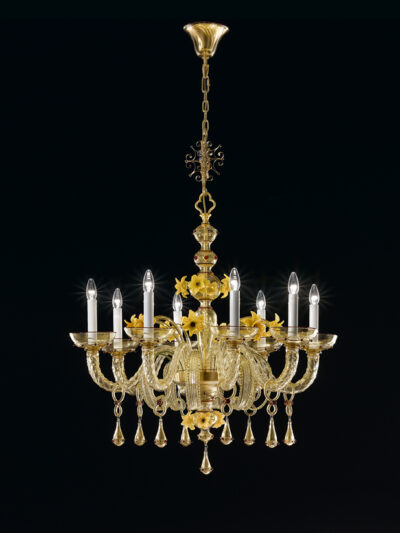 Made of forged metal, hand decorated with chains and bohemian crystals and the most beautiful blown Muranoglass fruits. Other sizes and versions are available. We guarantee first-class quality and high-quality processing. For further details, if you have any questions or requests, please contact us.