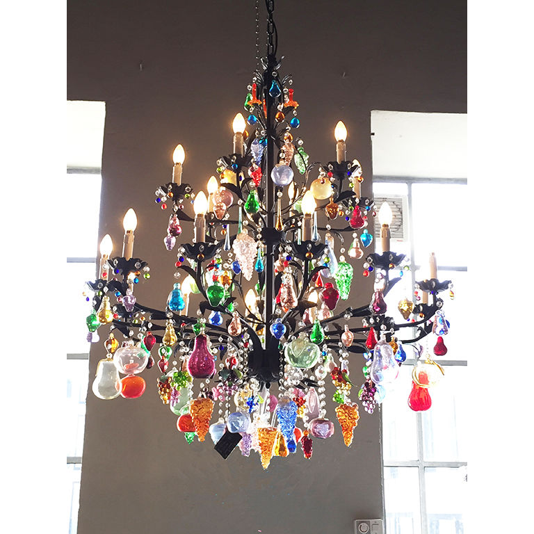This beautiful chandelier is handcrafted from hand-blown Murano glass and decorated with multi-colored glass flowers and fruits. The fruit variety as well as the color of the fruits can be selected individually. All chandeliers are available in multiple sizes, styles and color combination and of course made to measure, as well as the frame. They fit especially well in living and dining areas. We guarantee first-class quality and high-quality processing. For further details, if you have any questions or requests, please contact us.