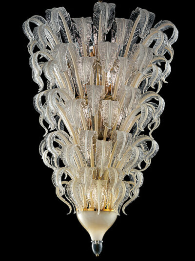 The collection Fresco convinces with refreshing elegance and a renewed concept of the Venetian chandelier. The delicate and original forms give new spirit to spaces. Every single glass-part is one of a kind and produced with a unique and inimitable technique in cold-working, shaping and grinding. All chandeliers can be individually customized. For further details, if you have any questions or requests, please contact us.