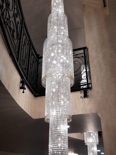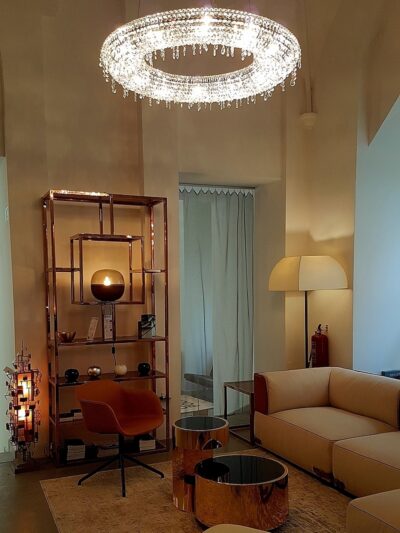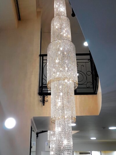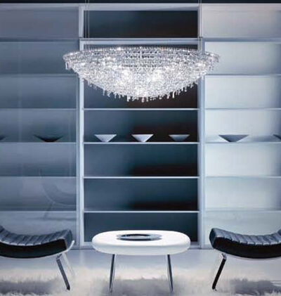 LINEA RAIN is the perfect crystal chandelier above the table. The glittering crystals and small lights look like glittering raindrops and make a dreamlike ambience in the room.