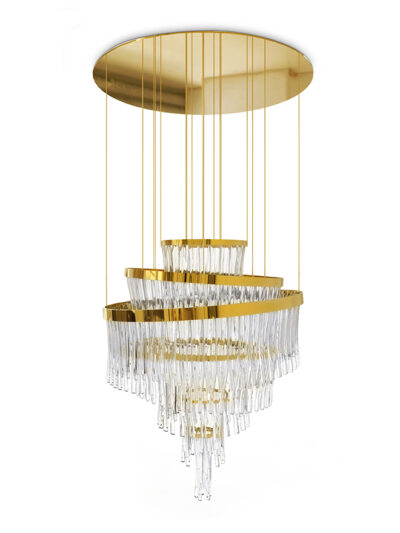 This chandelier from the Netherlands looks like a fresh summer breeze. Hence the name “Breeze”. Wonderfully twisted aluminium struts hold tasteful crystal flowers. These conjure up a stunning light in any room, and this chandelier looks particularly good with other chandeliers from the “Breeze” collection, so please contact us if you have any further questions or requests. We are happy to help you. Height: separately adjustable