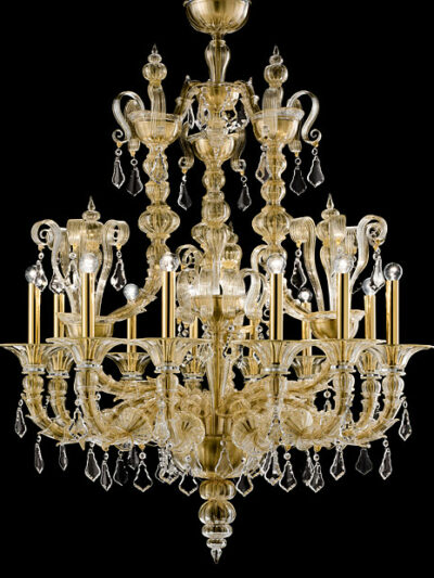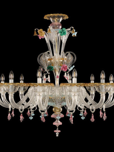 Catania is a specially shaped chandelier designed to be a functional lighting element while maintaining a grand aesthetic and traditional Venetian style. The piece is decorated with 24-carat gold leaf and features carefully handcrafted ornate glass drops. Made entirely in Murano, the piece is highly customisable and available in a variety of configurations.