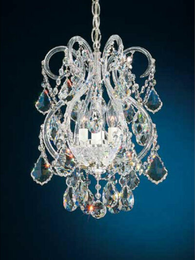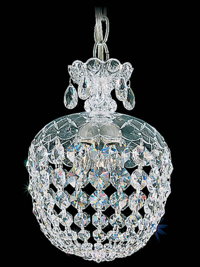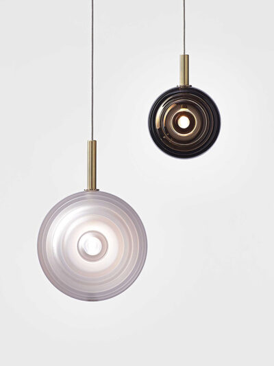 Pendant lamp with clear glass diffuser and metal structure with polished chrome finish. Available in different colors.