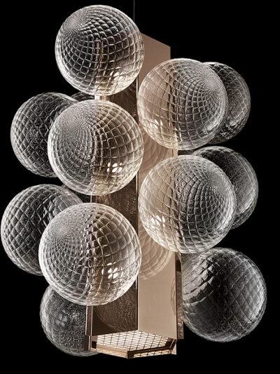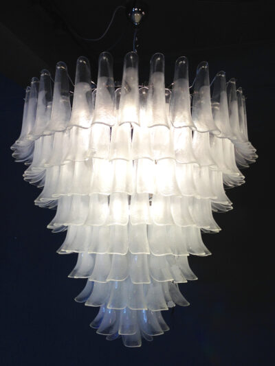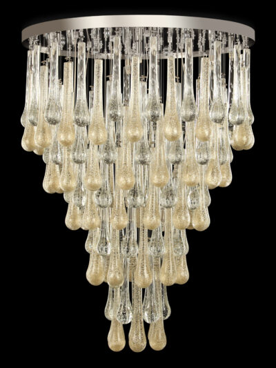 An enchanting chandelier made of amber glass elements. This chandelier is handmade on Murano, in Venice. Available in different frame and glass colours and different sizes.