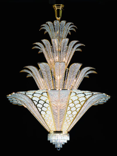 An utterly luxurious and beautiful oriental style crystal chandelier, handcrafted by our Austrian partners, from the “9560 Impression” collection. This chandeliers frame is made of 24 carat gold and is adorned with sparkling clear Swarovski crystals. This chandeliers main centre piece is of course the collection of sparkling crystals. The 20 lights are hidden by the crystals, creating incredible light effects. We offer a range of lighting from the “9560 Impression” collection. Please contact us for further information or details. We are happy to assist you.