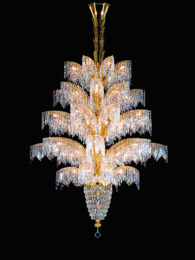 This elegant chandelier from 1001 is an Oriental beauty: A chandelier with an evocative name conjuring up the magnificence of the Orient. Here you can see the 2 tier structure. Two parts of elegant silk are mounted above each and decorated with beautiful ornaments. They are connected with delicate ropes and decorated with Murano pearls. The very special highlight of this construction is a polished metal ring. The frame is made of metal and gives the chandelier the necessary support. It is dominated by fine silk, elegant metal structures and warm colors like a stylish brown and a charming amber. This light it is a replica of the famous Mariano Fortuny, the interpreter of the “Silver Age” of Venice. For questions or requests please contact us. We ‘re here to help. More oriental chandelier from the collection ” Scheherazade ” are available.