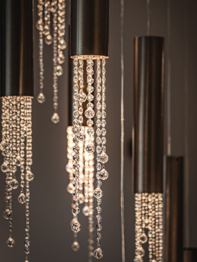 The collection Ghirigori is a series of colorful intertwined glass with a playful fantasy of lines which almost touch each other in space. Every single glass-part is one of a kind and produced with a unique and inimitable technique in cold-working, shaping and grinding. All chandeliers can be individually customized. For further details, if you have any questions or requests, please contact us.