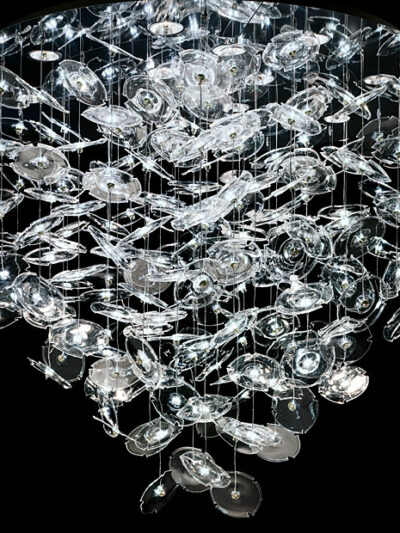 This beautiful modern 12-armed chandelier is manufactured from the finest and oldest glassblowers on Murano in Italy. The TamTam chandelier von Barovier&Toso comes in various sizes and colors and you can also choose from different shades.. We are happy to assist you with any questions or requests.