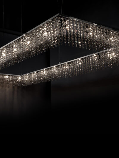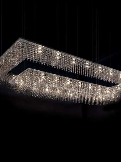 A lovely circular ceiling light from the "Rio" collection, handmade in Hungary. The unique design of this light, including a circle that becomes thicker on one side, makes this light so special. The stainless steel frame is adorned with crystals that create a beautiful and harmonious light. An elegant and beautiful light! We offer a range of lighting from the "Rio" collection. Please contact for more details. SizeDiameter: 140 cm Lightbulbs: 16 bulbs