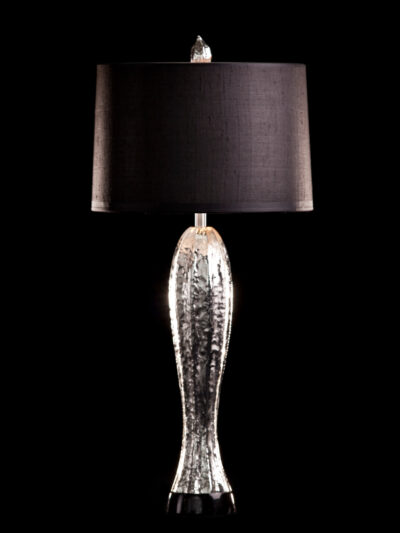 Transparency and exclusivity combined in a beautiful design table lamp. “Rosedale” is designed and handmade by our Dutch partners. The base of the lamp consists of a slender gold silhouette that is externally surrounded by an elegant inverted glass cone. This successful combination creates wonderful lighting effects. Two lamps are hidden behind a beautiful fabric shade in a warm honey gold and provide an inviting light. More table lamps of different materials and in different sizes from the collection “Rosedale” are available. Please contact us for any questions, requests or for more details. Height: 90 cm,Width: max. 43 cm, Number of bulbs: 2 x E27, max. 60 Watt