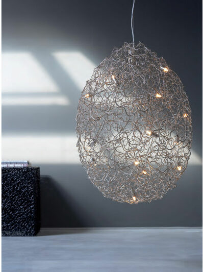 "Broom" – by hearing the name you might think of a cleaning tool. But the design pendant "Broom" has absolutely nothing to do with a cleaning tool. Only the basic idea has been adopted. The rectilinear frame consists of stainless steel and carries the bulbs. Filigree stainless steel threads form a curtain in order to hide the bulbs and thus provide incredible lighting effects. By light gusts of wind, the curtain moves slowly back and forth. "Broom" echoes the importance of agility in life. Additional lamps from the collection "Broom" are available. Please contact us for any questions, requests or for more details.
