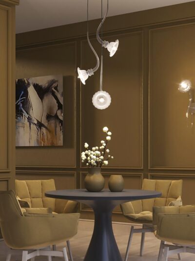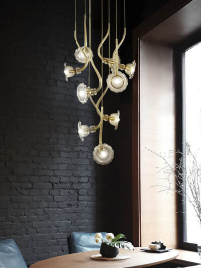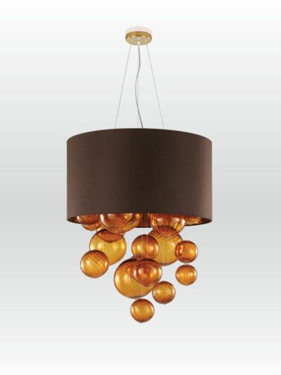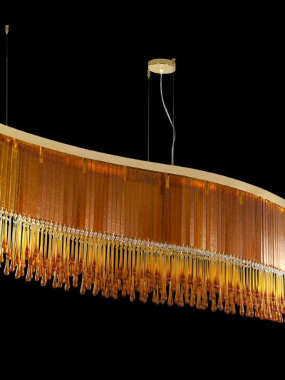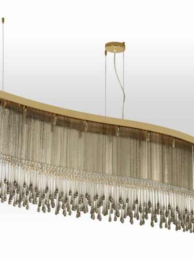 Heritage 10+10-flame pendant chandelier in wheel shape with hand-blown crystal elements in art glass with “Rigamenà” texture. Oval structure in burnished brass. Other colors, sizes and variants are available from us. We guarantee first-class quality and the highest quality workmanship.