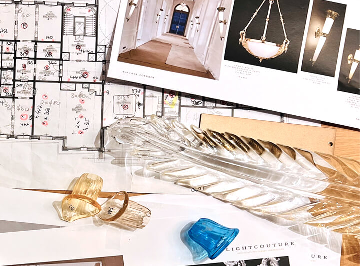 Each project begins with a personal talk with you, either in our showroom or in a call. Together, we’ll find your style and clarify questions such as the purpose of the chandelier, your timeline and, of course, your budget. If requested, we’re happy to come see you personally. Worldwide, wherever you are.