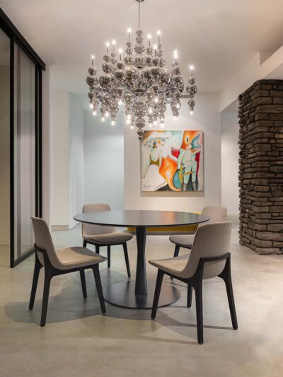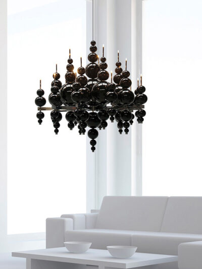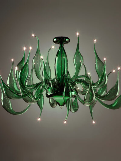 Inspired by the leaves of the ginkgo tree, it is a stunning chandelier with a unique expression and shape that reflects the beautiful irregularity in nature. The extraordinary design floats in the room and illuminates every interior with extraordinary warmth and tranquility. Each sheet of porcelain is precisely positioned to best capture and reflect the light.
