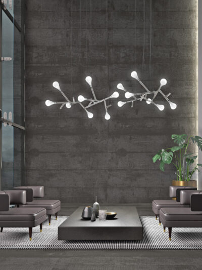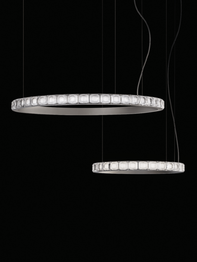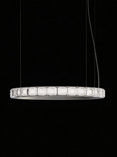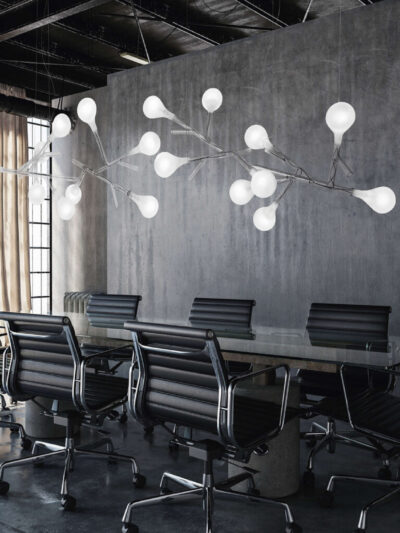 Handgefertigte „torchòn“-Glas-Hängeleuchte, in transparenten oder schwarzen Farben mit weißen Glasdiffusoren.